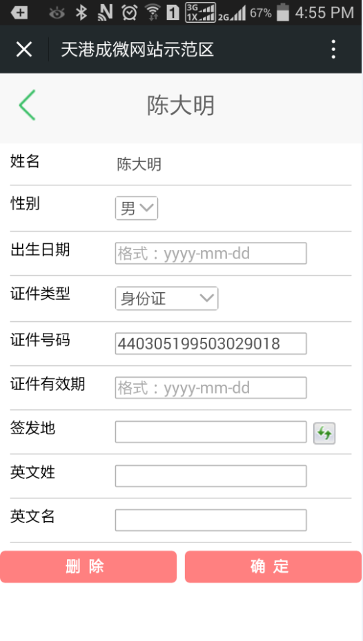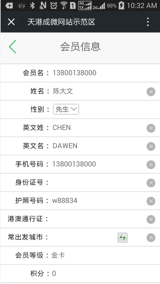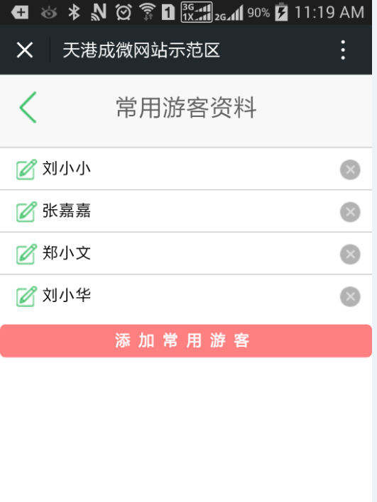 点击“常用游客资料”可以管理本会员卡下面的常用游客资料