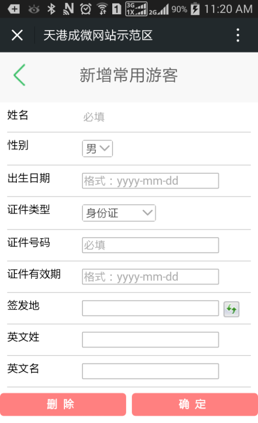 或者点击【添加常用游客】按钮新增一个常游客资料。